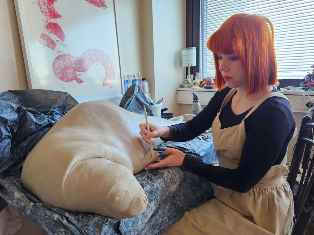 Työskentelen Suomen vesistöjen rehevöitymistä ja lajien monimuotoisuuden häviämistä käsittelevän teoskokonaisuuden parissa. Teoksissa yhdistelen keramiikkaa ja lasia, jotka materiaaleina heijastelevat uhanalaisten eliöiden ja niiden elintilojen haurautta.