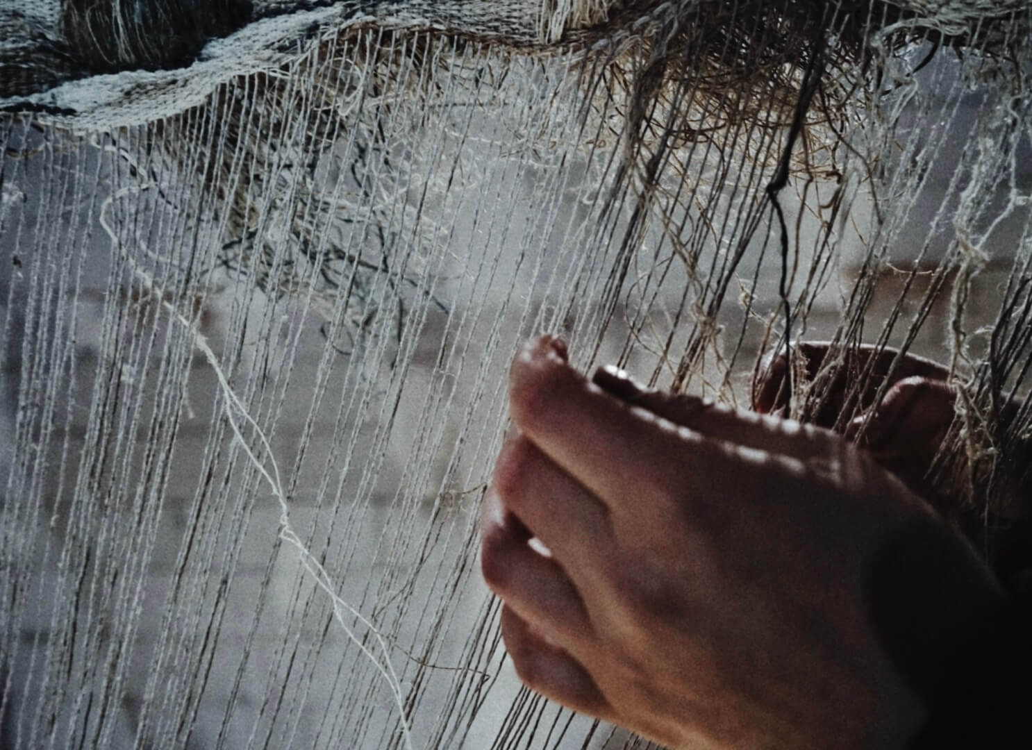 Työskentely luonnonpigmenttien, käsinkudonnan, biomuovin ja löydettyjen esineiden kanssa muodostui minulle tavaksi käsitellä elettyä kokemusta – erityisesti sodan aikana. Toisto, taktiilisuus ja havainnointi muuttuivat selviytymisen välineiksi. Polkuni on ollut siirtymä kuvien tekemisestä materiaalin kuuntelemiseen, tuotannosta läsnäoloon.