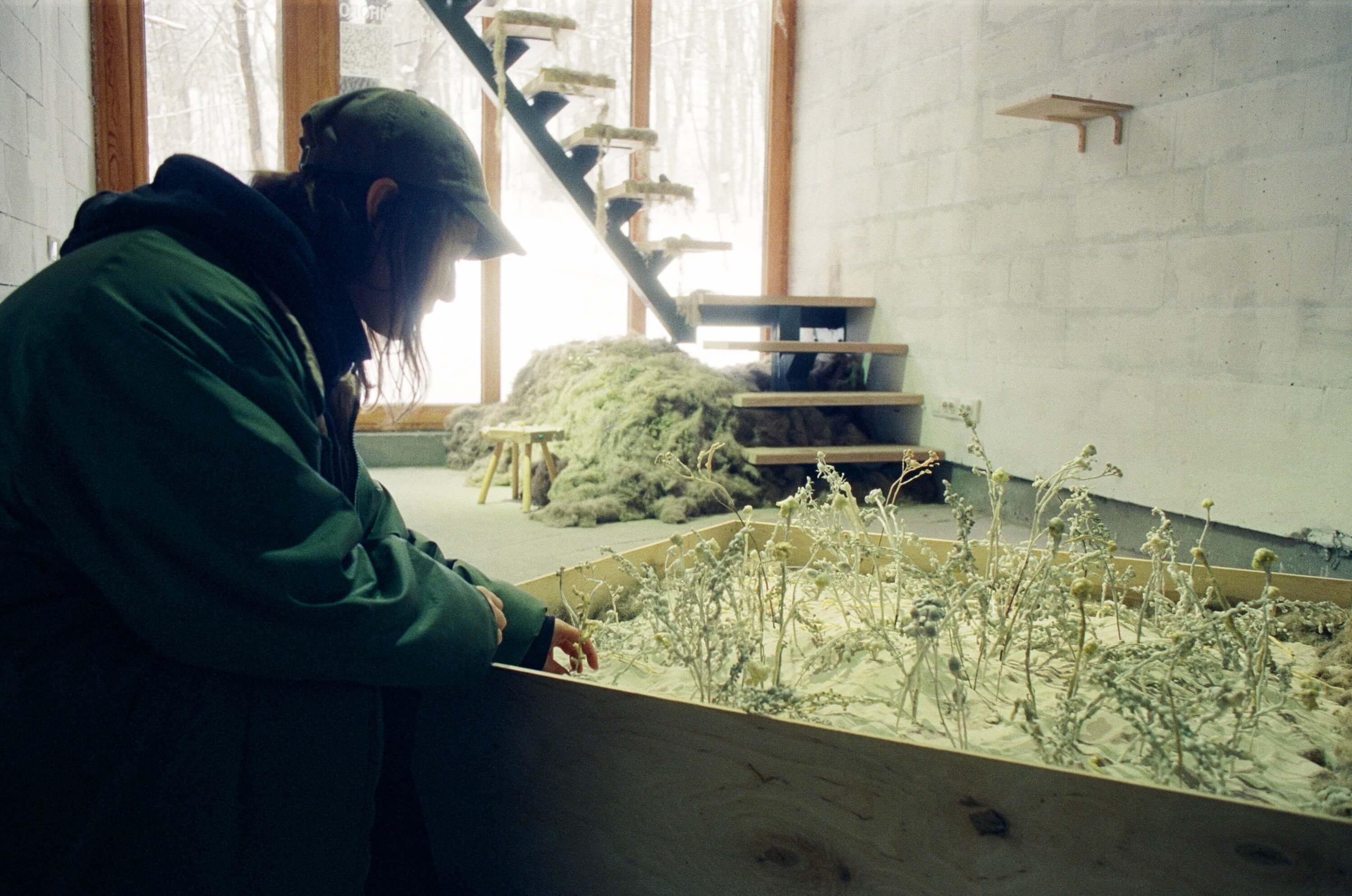 Työskentelen pääasiassa luonnonmateriaalien kanssa, en ainoastaan ekologisista syistä vaan siksi, että ne kantavat aikaa mukanaan. Lankojen värjääminen kasveilla tai juurien skannaaminen digitaalista animaatiota varten on dialogia – se on huomioimisen ja huolenpidon ele.